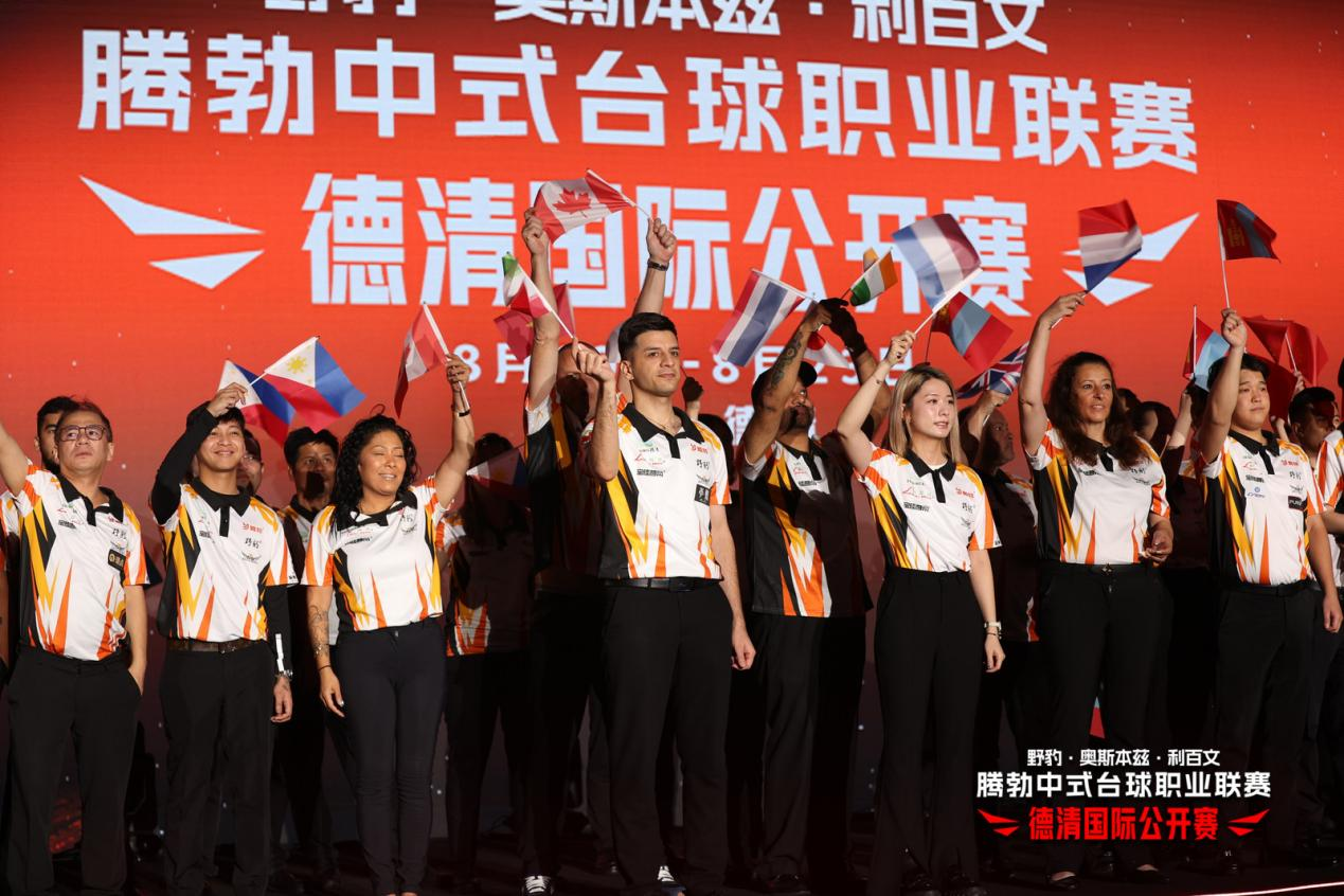 开幕式在德清县国际展览中心隆重举行,现场气氛热烈,观众热情高涨。来自世界各地的选手们齐聚一堂,他们手持自己国家的国旗,展现出多元文化的魅力。开幕式上,精彩的文艺表演为赛事拉开了帷幕,展现了腾勃中式台球职业联赛深厚的文化底蕴。