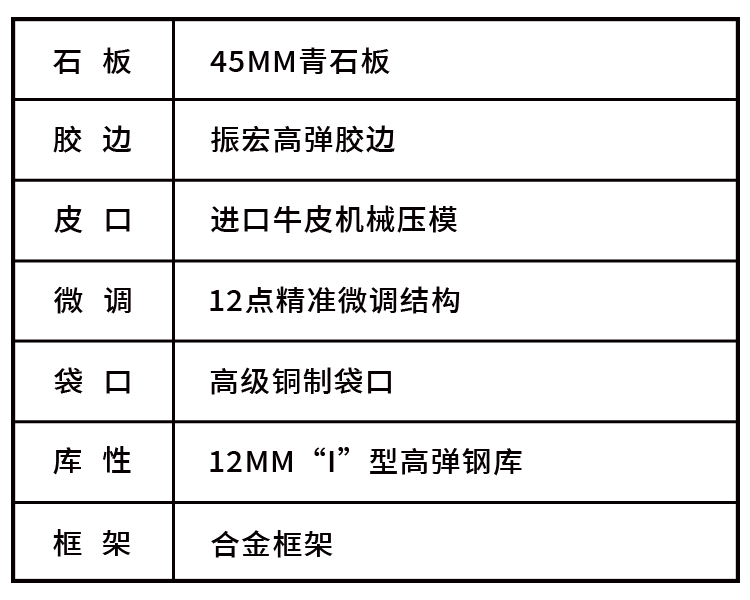 台球桌的质量关键在于石板、钢库、胶边、台布、球、杆等,配置越高,打感越好,越耐用,使用寿命越长!