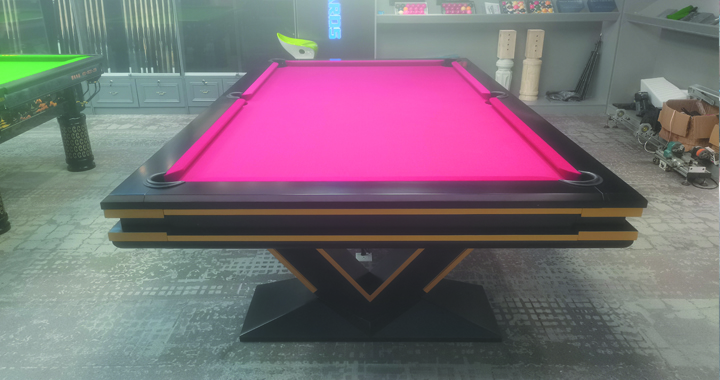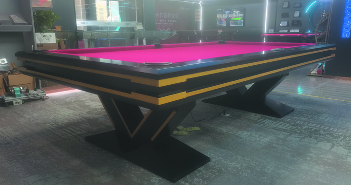 胜利:V型,胜利象征,更是稳固的V型支撑结构,以鲜艳的红色台面和独特的黑黄相间边框设计,为您的游戏空间注入无限活力。赋予了台球桌现代感与艺术感的双重魅力,帮您更好的体验动感与活力的激情碰撞。
