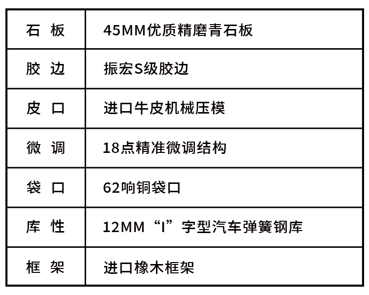 45MM优质精磨青石板加上优质台尼的辅助,击球线路如行云流水般精准顺畅