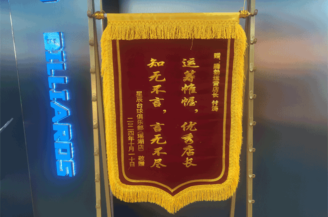 2024年10月星辰台球俱乐部(瑶湖店)赠送荣誉锦旗