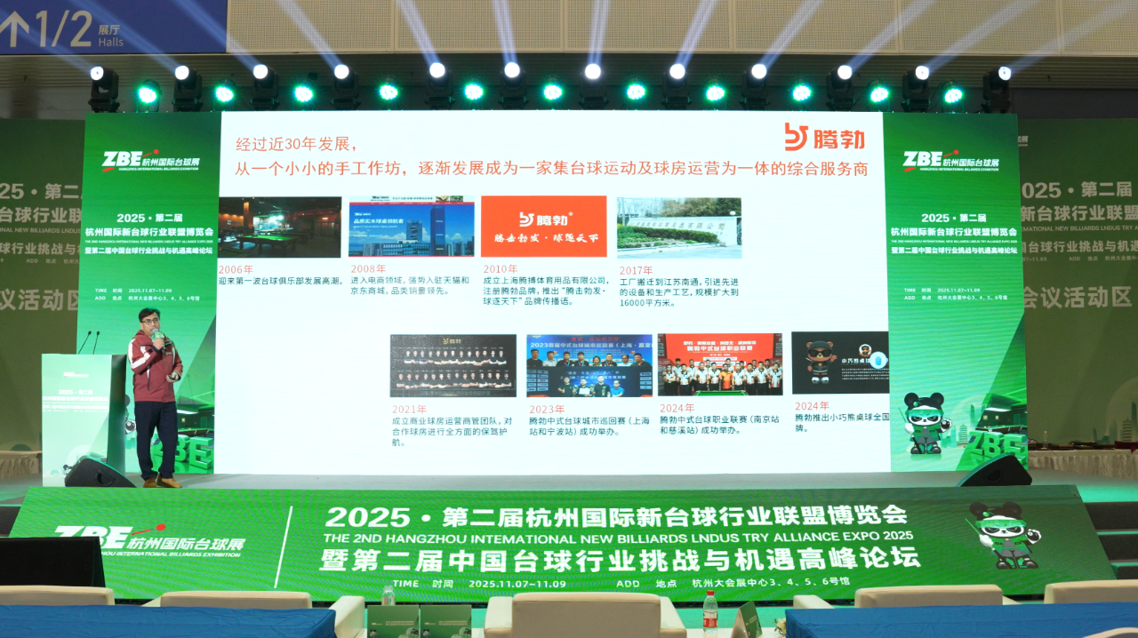 11月7日至9日,腾勃以320㎡超大展区面积震撼亮相2025第二届杭州国际新台球行业联盟博览会,创历史参展规模之最。此次展会,腾勃携全系列明星产品与创新成果,为行业带来一场精彩绝伦的台球盛宴。