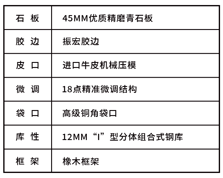 台球桌的质量关键在于石板、钢库、胶边、台布、球、杆等,配置越高,打感越好,越耐用,使用寿命越长!