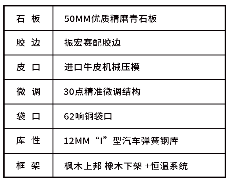 台球桌的质量关键在于石板、钢库、胶边、台布、球、杆等,配置越高,打感越好,越耐用,使用寿命越长!