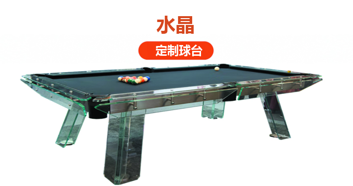 腾勃·水晶:水晶:特制超白水晶钢化玻璃台球桌,定制304不锈钢、钢化玻璃配件和纳米防划伤工艺赋予了产品独特的轻盈和时尚魅力,在提供优秀的运动的体验的基础上为球手提供一种新颖的运动体验。