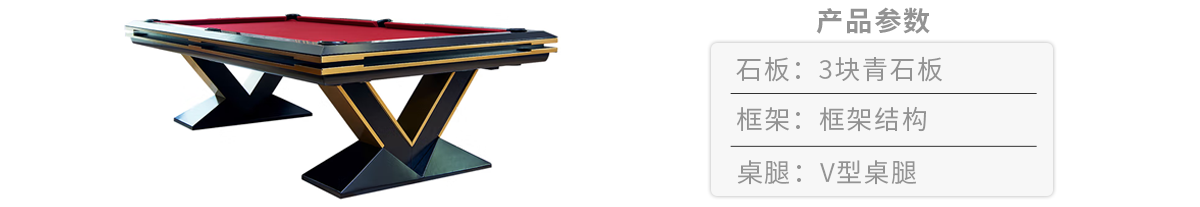 胜利:V型,胜利象征,更是稳固的V型支撑结构,以鲜艳的红色台面和独特的黑黄相间边框设计,为您的游戏空间注入无限活力。赋予了台球桌现代感与艺术感的双重魅力,帮您更好的体验动感与活力的激情碰撞。