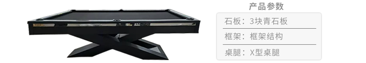 立体美学X型交叉设计,在增加台球桌稳定性的同时,还赋予了台球桌独特的现代感和艺术感。可定做8尺桌、9尺桌、餐板和乒乓球桌。