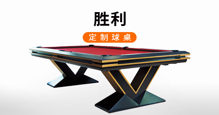 胜利:V型,胜利象征,更是一款乒乓球和台球多功能台球桌,以鲜艳的红色台面和独特的黑黄相间边框设计,赋予台球桌现代感与艺术感的双重魅力,帮您更好的体验动感与活力的激情碰撞。